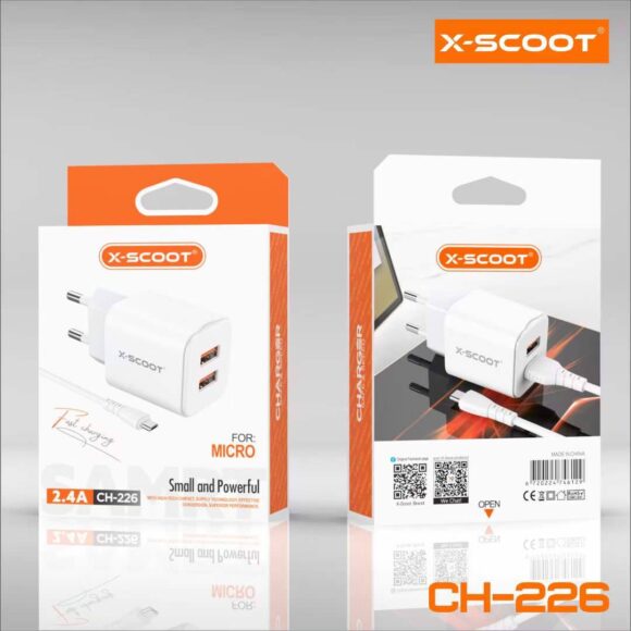 X-SCOOT CH-226 Wall Charger 2-USB With Cable Type-C 2.4A